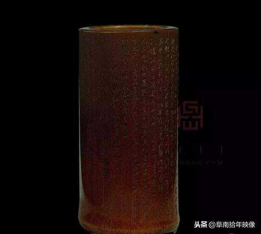 筒身阴刻行楷书宋代文豪苏轼《前赤壁赋》全文。款署“时丙辰秋九月上浣书于怀白山房,云樵山人”,下刻“得”、“璜”连珠印,起首刻“草草”椭圆形印,并焉阴刻。全文镂刻深浅得中,运刀爽利,字底洁净,一气呵成。融书法与刀法焉体,神采照人,绝少造作之气。此器刻于嘉庆元年(1796)。