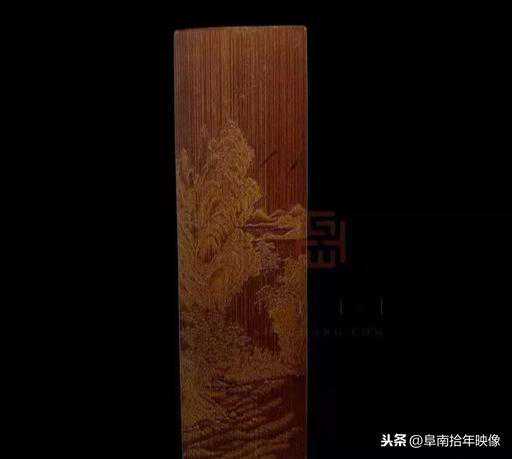 此器采用浅浮雕技法,山水、松石、舟楫和人物浑然-一体,运刀老辣,意境苍凉,使人如临其境而发思古之幽情。