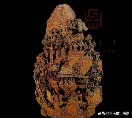 圆雕仙山一座,严崖磊落,著松虬曲,溪涧曲折而泻成飞瀑,一径蜿蜒通于山顶,其周亭秦阁谢错落有致。男女仙亲手捧贺礼或乘舟而渡,或循径而上,成群结队,各具情态山顶祥云冉冉,西王母乘鸾凤飘然而至,先到数仙拱手拜贺。制品以竹根为材,采用了圆雕.浮雕、镂空透雕等多种技法。