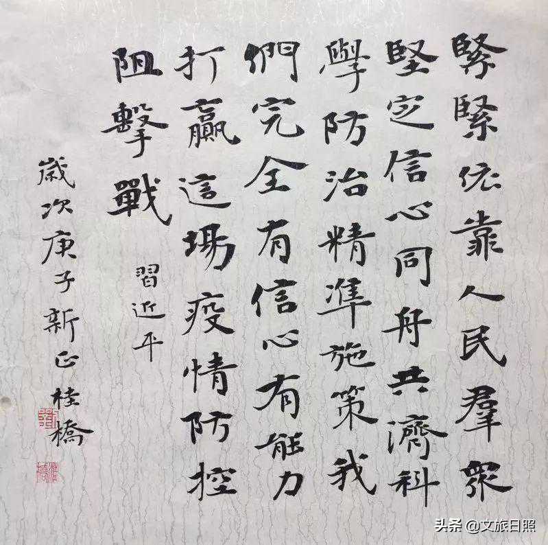 面对新型冠状病毒感染疫情,无数奔赴疫情一线的工作人员同舟共济、众志成城冒着生命风险坚守岗位,投身于这场必须打赢的疫情防控阻击战。日照市文化和旅游局认真贯彻落实习近平总书记指示精神和省、市抗击疫情重要决策部署,积极开辟第二阵线,发动文艺工作者创作书画、文学、音乐、曲艺、戏剧……等艺术作品,充分发挥文艺作品提振士气、凝心聚力的作用,引导广大人民群众万众一心、众志成城,全面打赢疫情防控阻击战。