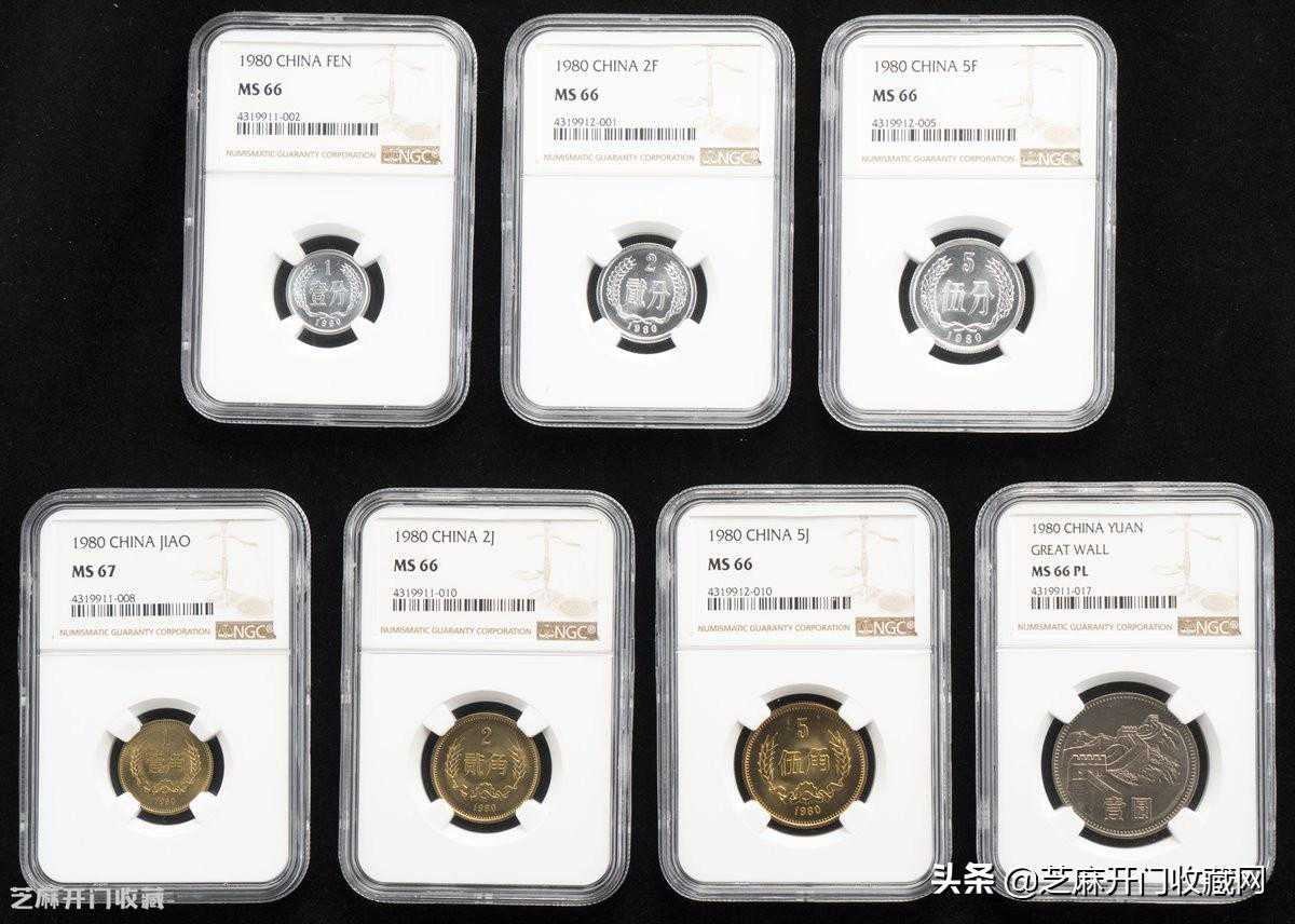 3:1980年长城纪念币一套共七枚,分别壹分贰分伍分壹角贰角伍角壹圆,NGCMS66-67,成交RMB8970