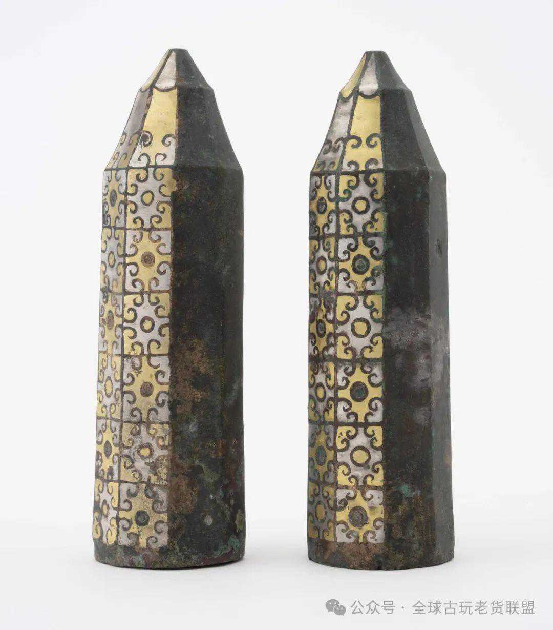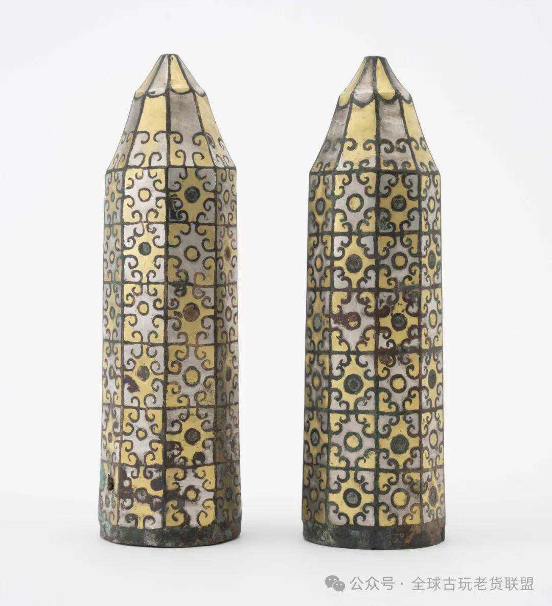 战国错金银卷云纹车軎殳一对