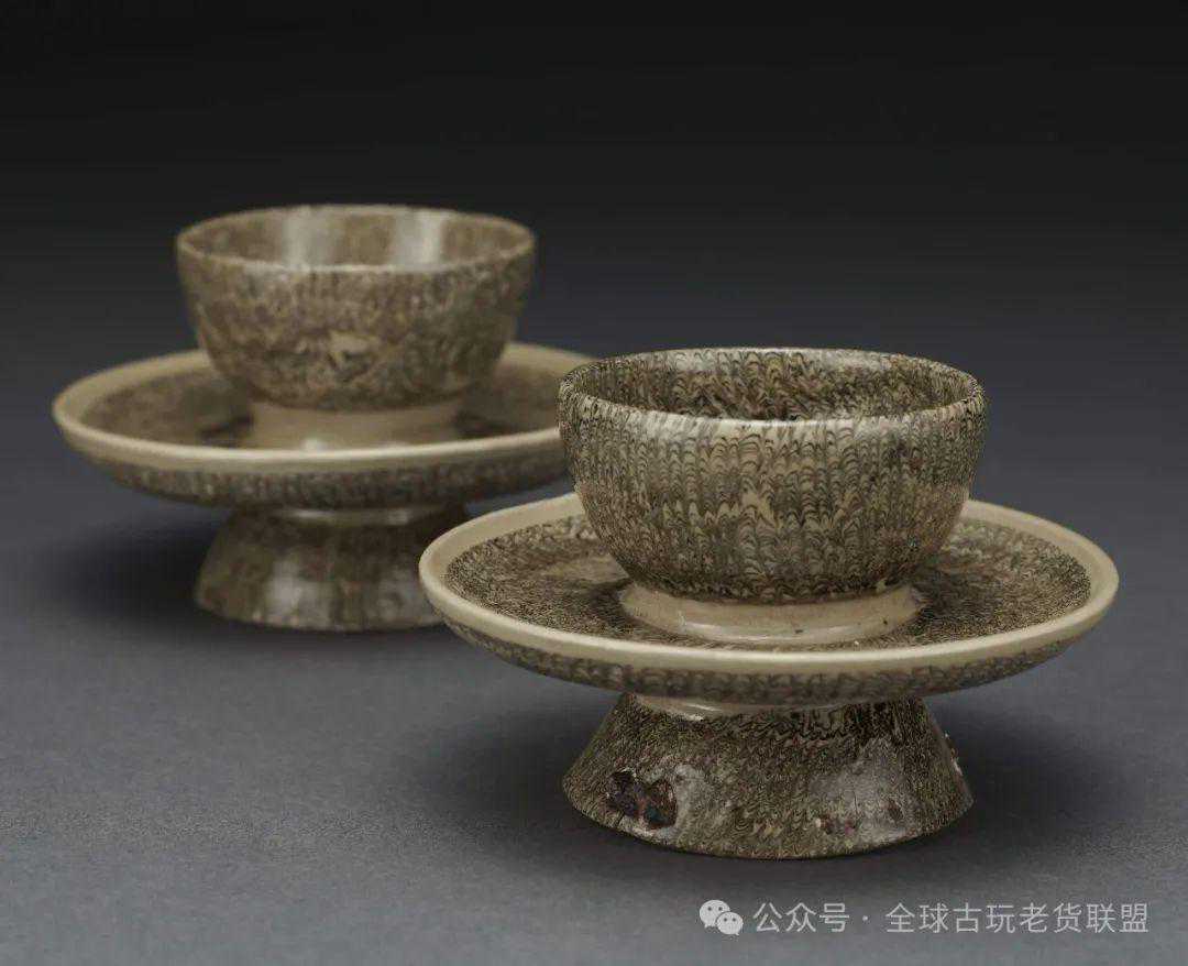 北宋当阳峪窑绞胎盏托一对