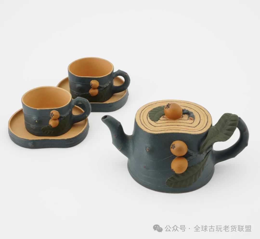 现代蒋蓉制紫砂段泥枇杷桩套壶