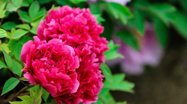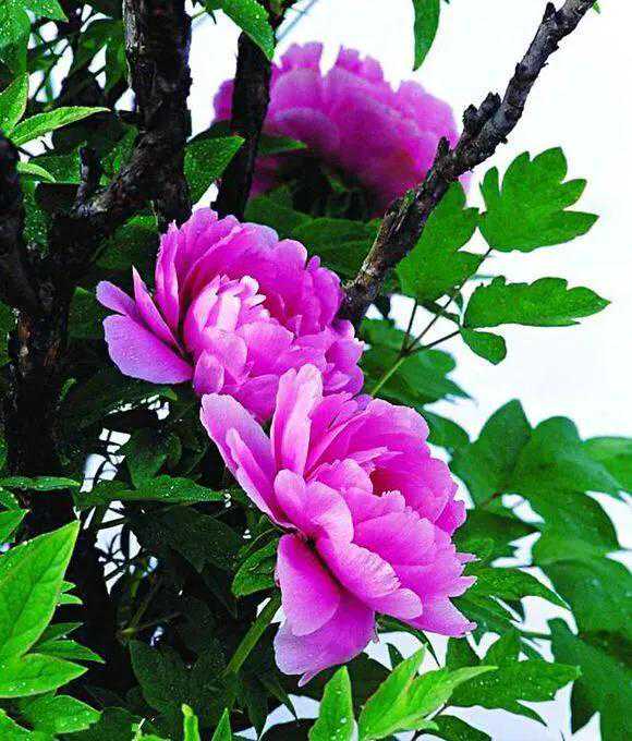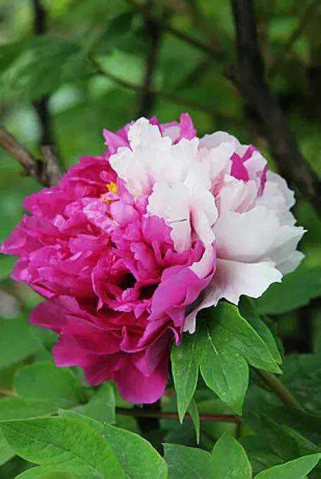 紫红花瓣与纯白花瓣的复色牡丹花非常稀少。