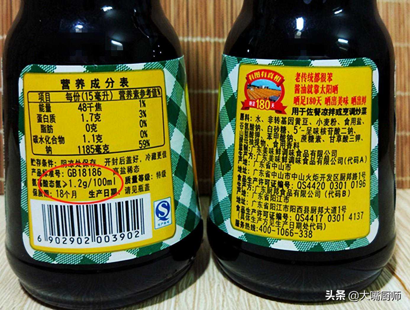 仔细看看配料表,其实生抽和味极鲜的原料成分、生产工艺、保质期都是一样的,唯一的区别就是“氨基酸态氮”的含量了。目前市场上的酱油,也就是这一点不一样了。氨基酸态氮含量达到1.2g/100ml的酱油还有自然鲜、一品鲜,味道都是非常鲜美的。