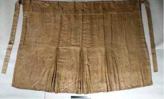 百迭裙,南宋墓出土过两种情况,一种是出自于南宋赵伯澐之墓,直接是一块长方形的布,裙身无拼接,中间打满顺褶,左右留有光面。