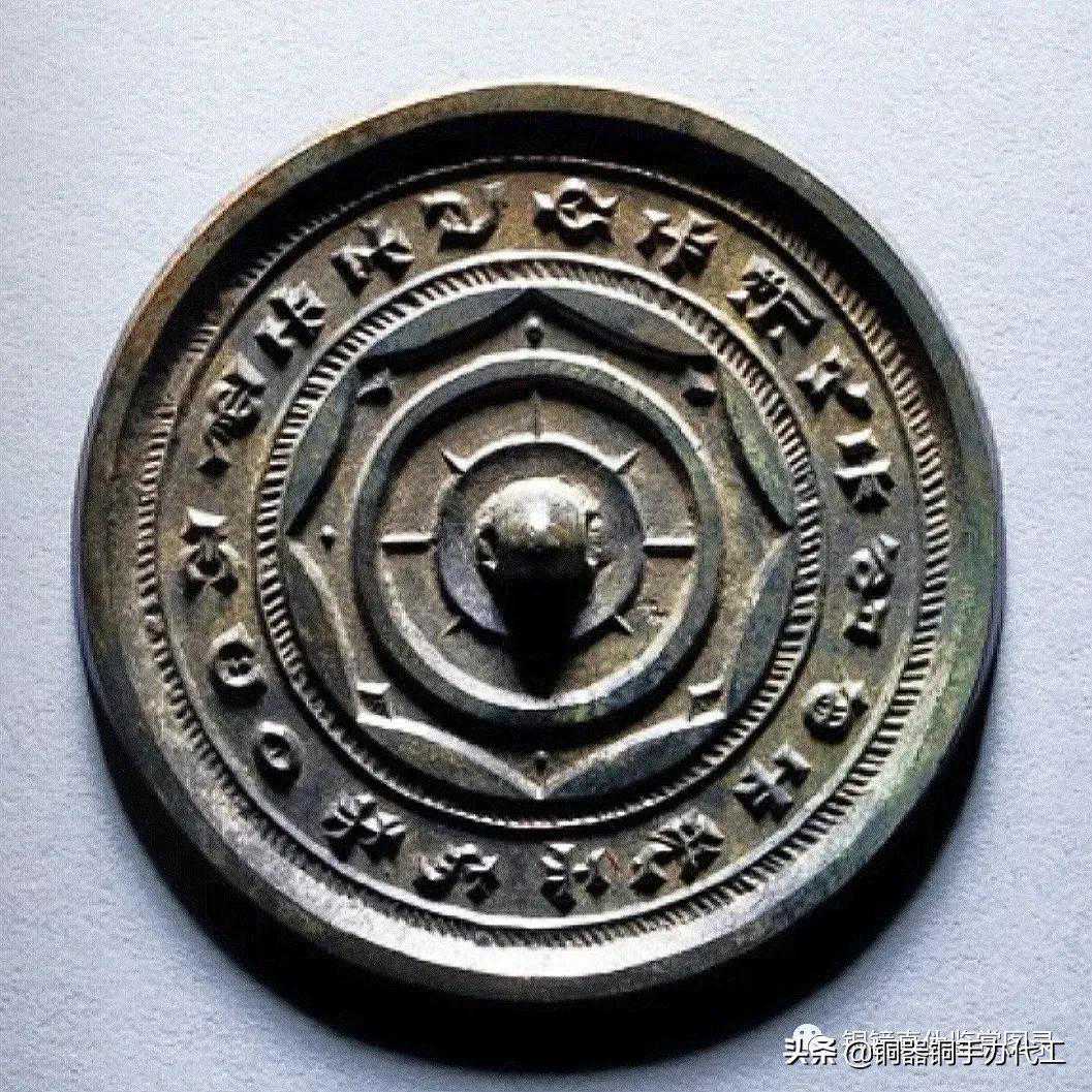 镜品种特殊,品相甚佳,字体奇巧,纹饰神秘。一周铭文:“见日之光,长毋相忘”。