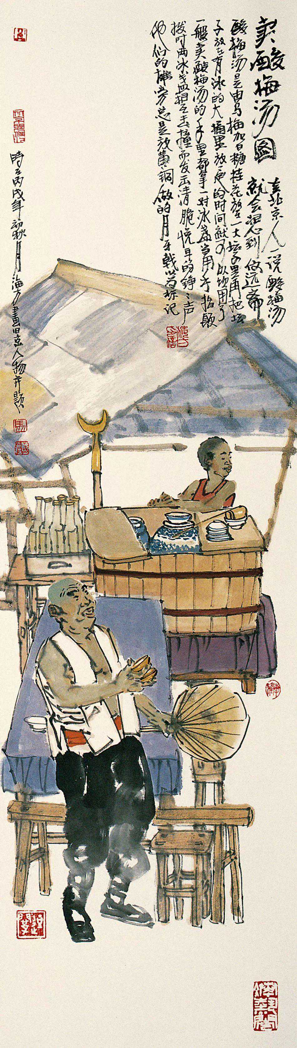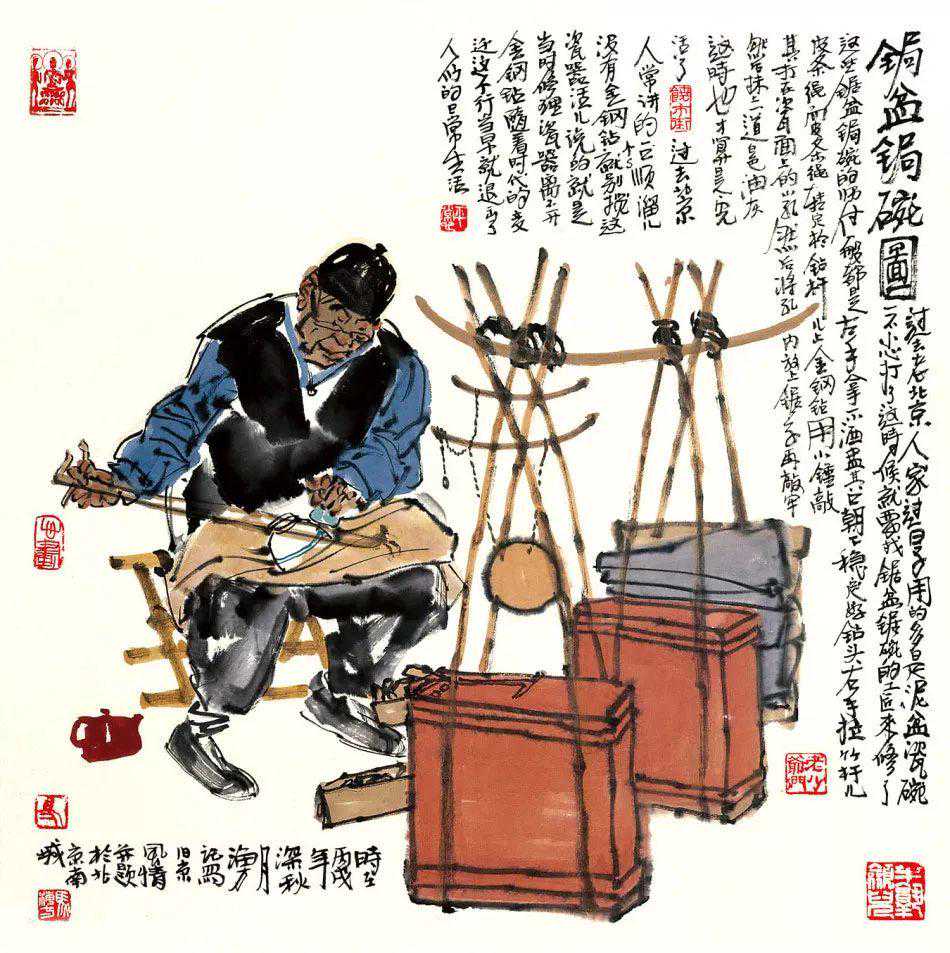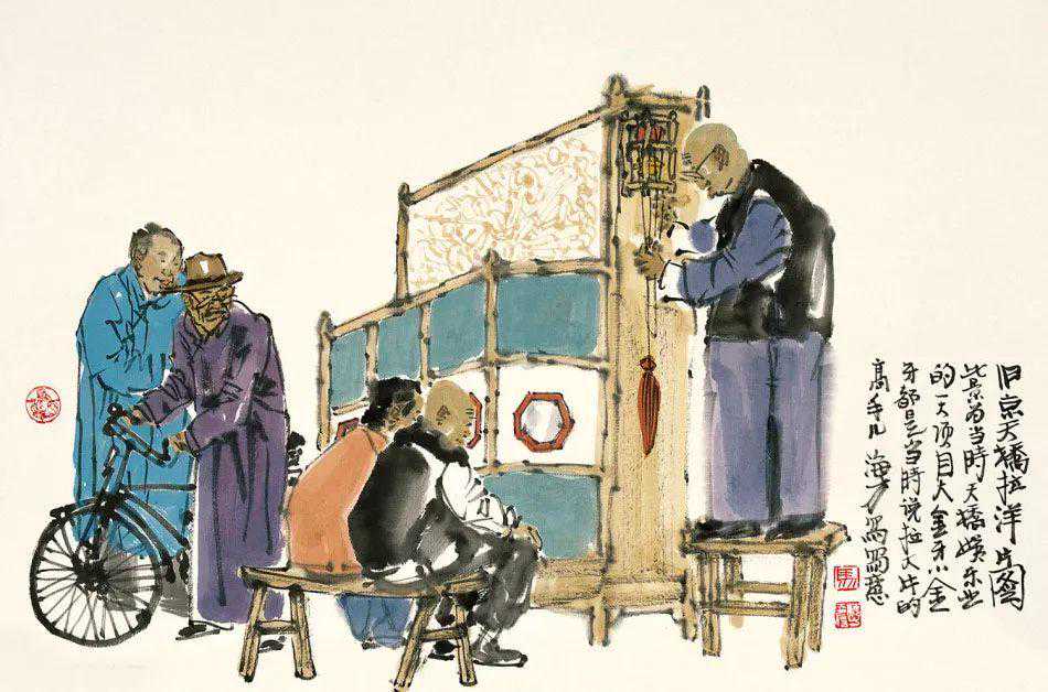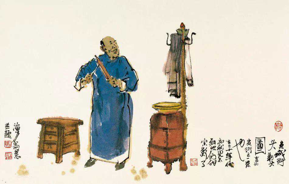 京城的画坛,马海方是一人物。能称得上“人物”,自然非等闲之辈。马海方的画,越来越受到人们的抬爱,一提到京味儿画家,便首先想到他。喜欢京味儿文化的人,手里如果没有马海方的画儿,似乎缺点什么。一个画家能画到这种成色,也算不白在家门口立着画家的招牌,马海方这两笔刷子对得起“画家”二字。