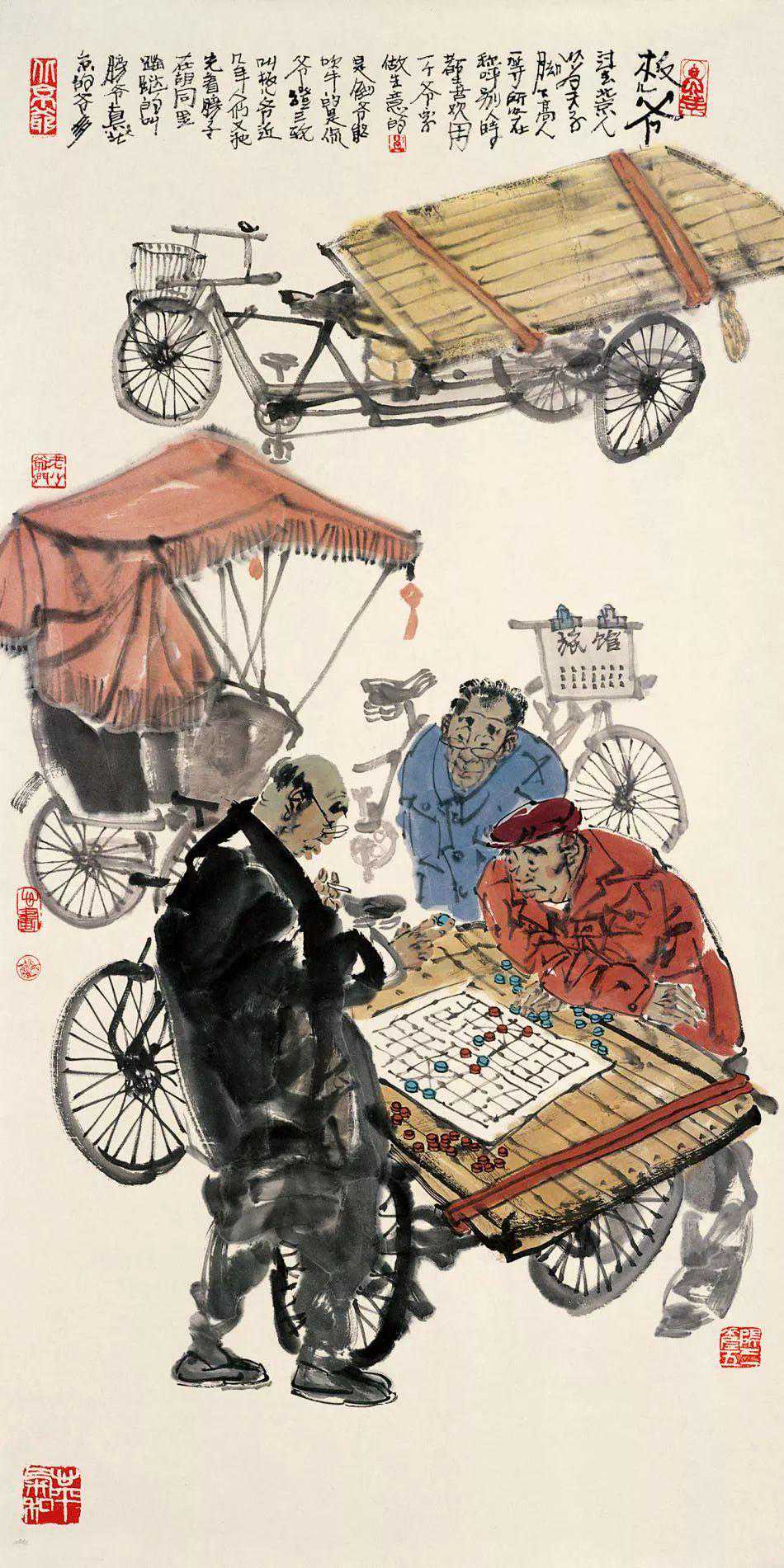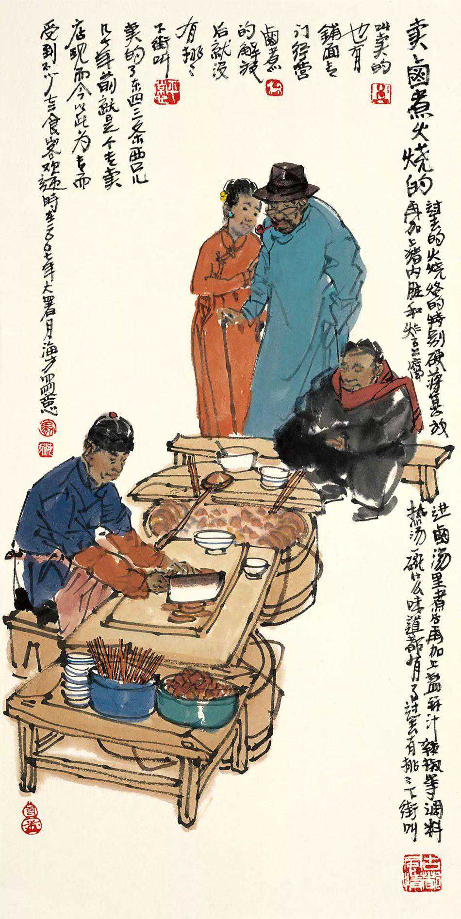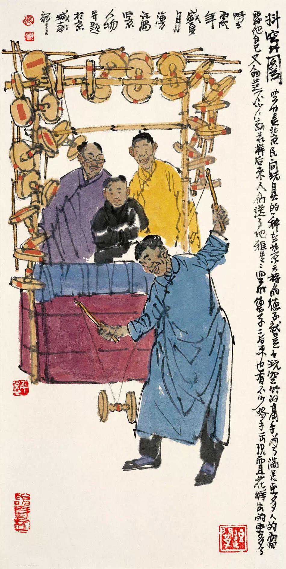 京城的画坛,马海方是一人物。能称得上“人物”,自然非等闲之辈。马海方的画,越来越受到人们的抬爱,一提到京味儿画家,便首先想到他。喜欢京味儿文化的人,手里如果没有马海方的画儿,似乎缺点什么。一个画家能画到这种成色,也算不白在家门口立着画家的招牌,马海方这两笔刷子对得起“画家”二字。