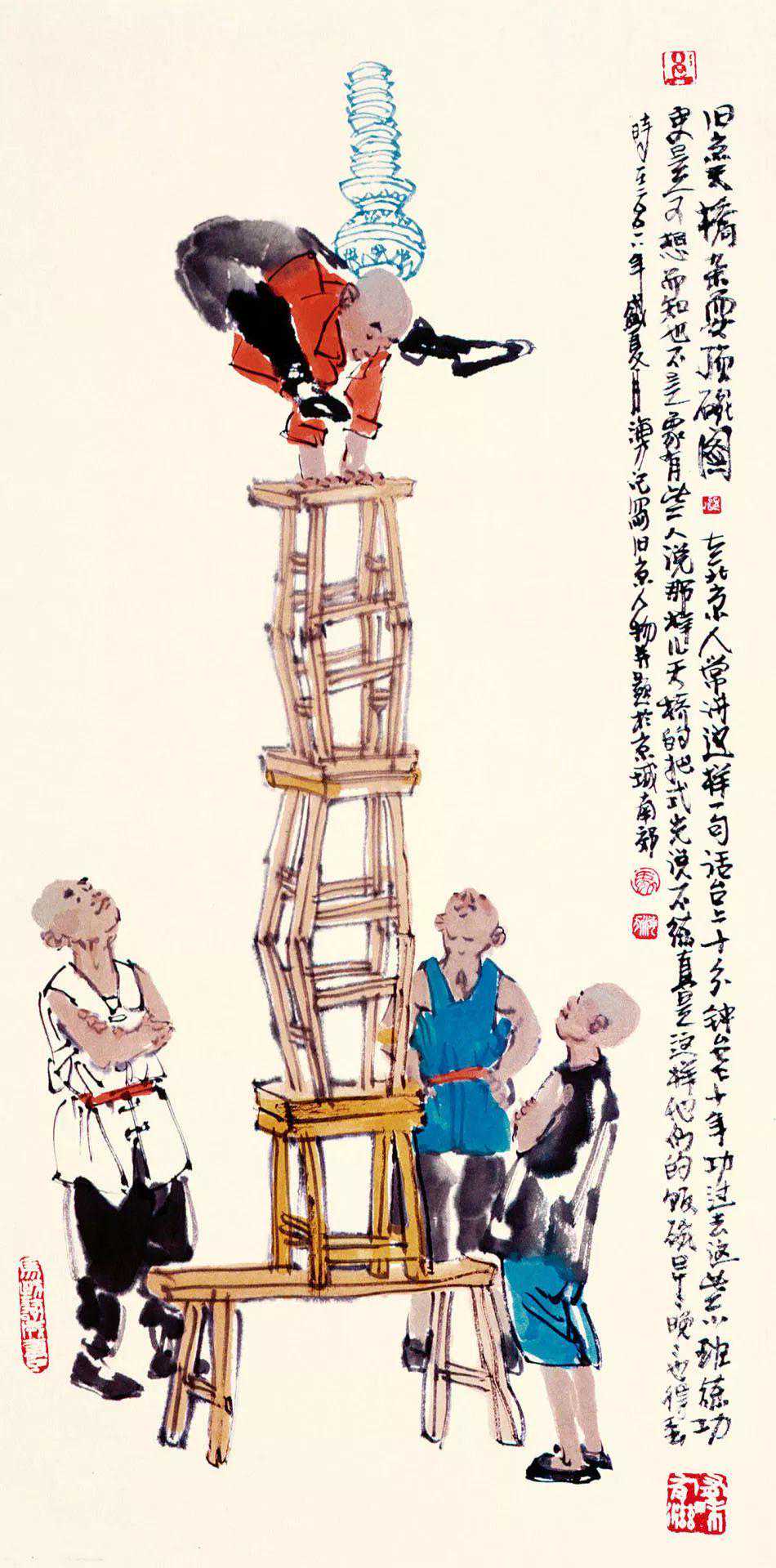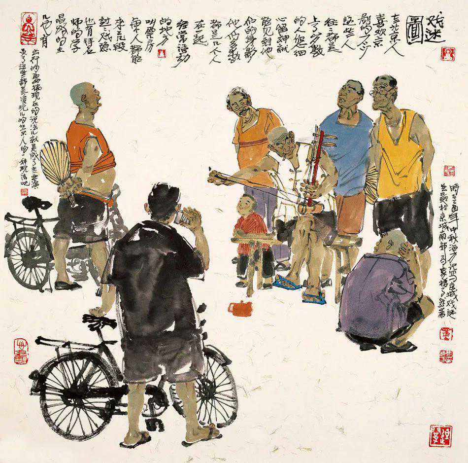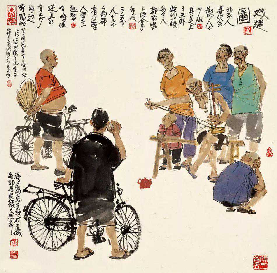 过去在中央美术学院学习的时候,听贺友直先生讲他画连环画创作总结的四小,即小人物、小动作、小场景、小道具,通过近几年的人物画创作,我想,在画面上再加点小情趣,这样画面可能更有看头儿,或更耐人寻味。