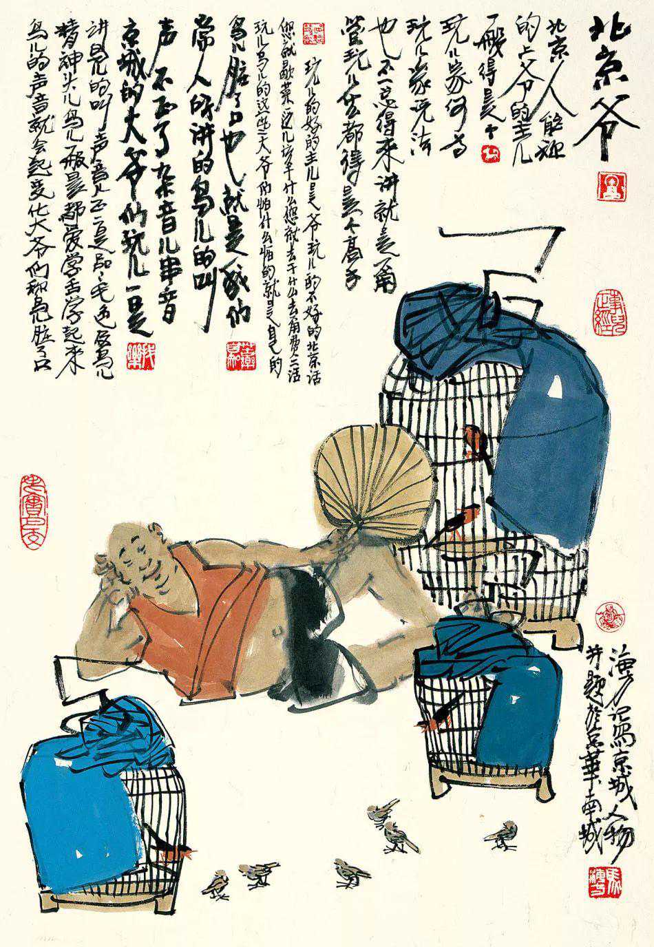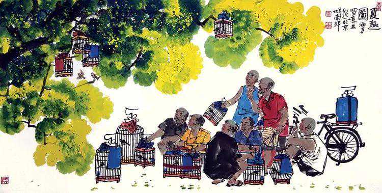 北京人有句常说的话,心静自然凉,你细瞅瞅这画面上,何凉之有?其实画的是一种心情,心里静,身自凉。