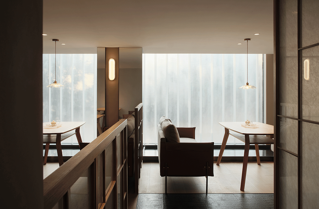 有关自然光:我们打开了所有能打开的墙面替换为U型玻璃增加室内自然光的射入面。即便南侧的入口,我们也采用了通透的处理方式。室内的墙面尽可能地减少,所有的区隔都以半透的材料区隔开来,甚至于两层之间。人和物都在光和珀的关系中似在非在。