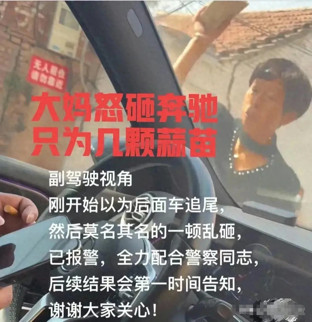 但就是没想到,自己被砸竟然只是因为开车过程中,车轮可能压到了大妈种植的一部份蒜苗!