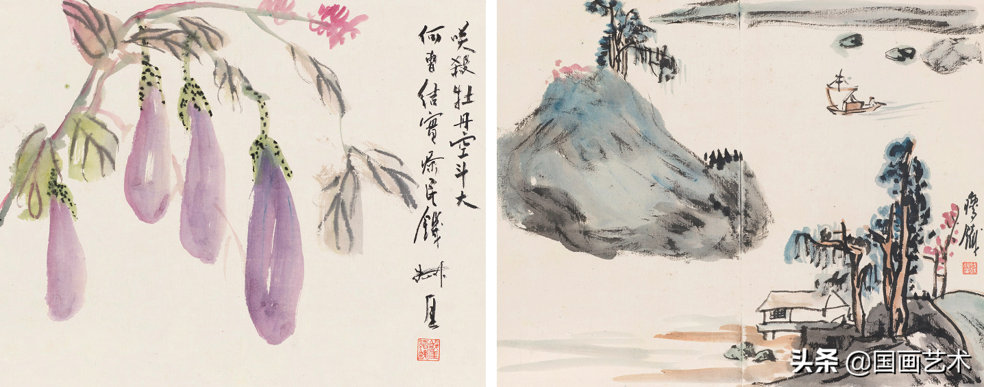 钱瘦铁山水画近石涛,所作笔墨苍润,气势雄浑,画风朴拙,有生活气息。