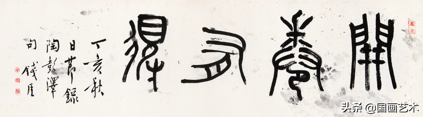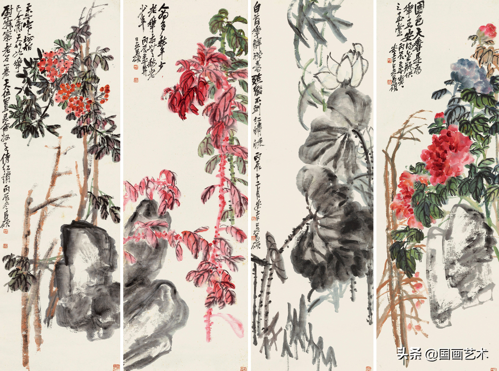 他集“诗、书、画、印”为一身,融金石书画为一炉,被誉为“石鼓篆书第一人”、“文人画最后的高峰”。在绘画、书法、篆刻上都是旗帜性人物,在诗文、金石等方面均有很高的造诣。