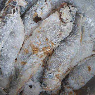 2、用料酒,葱姜,盐来腌制小黄花鱼,去掉鱼腥味,腌1小时以上,夏天可以放冰箱冷藏。腌好的鱼把料汁控干,正反两面裹上一层薄的面粉和十三香备用。