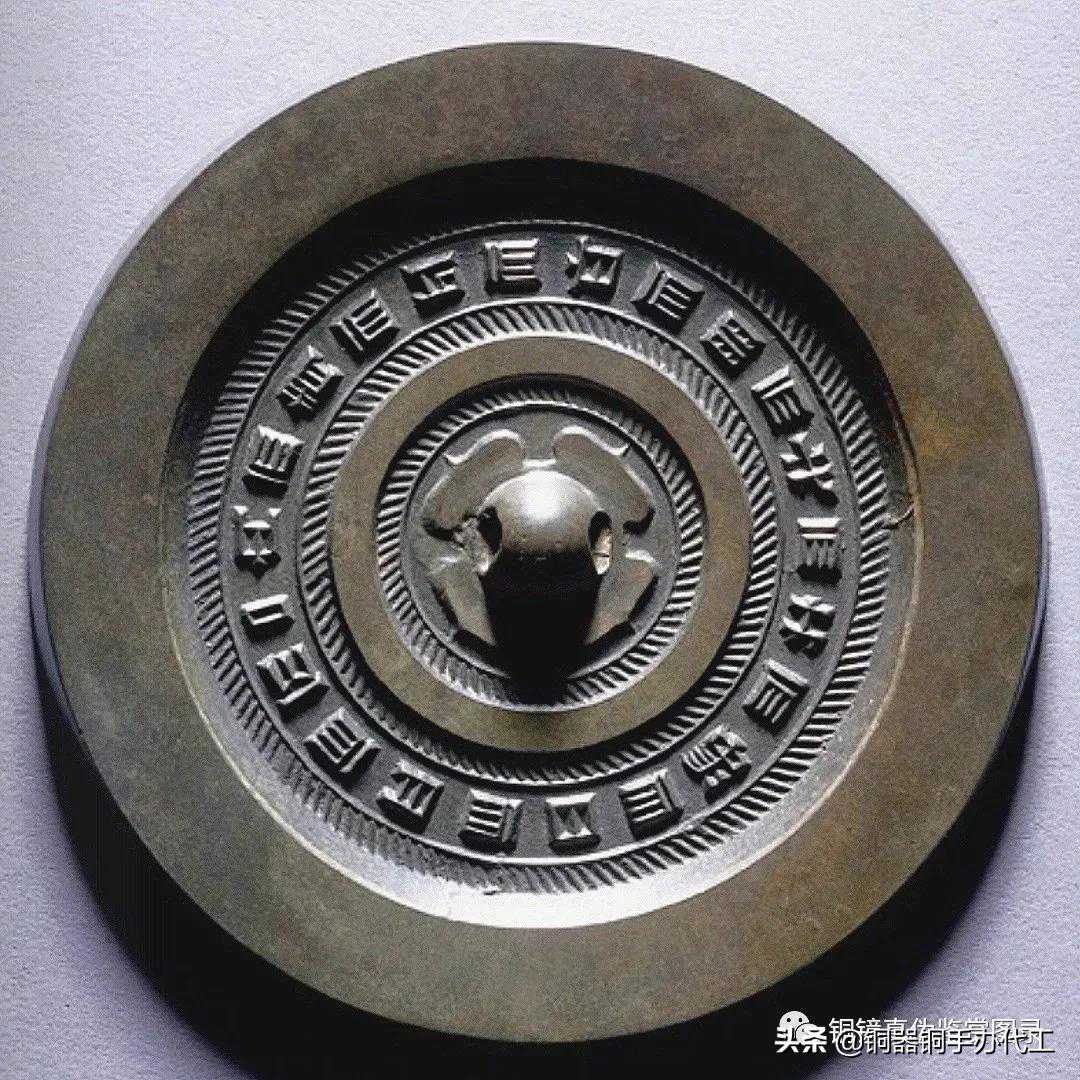 镜品种特殊,品相甚佳,字体奇巧,纹饰神秘。一周铭文:“见日之光,长毋相忘”。