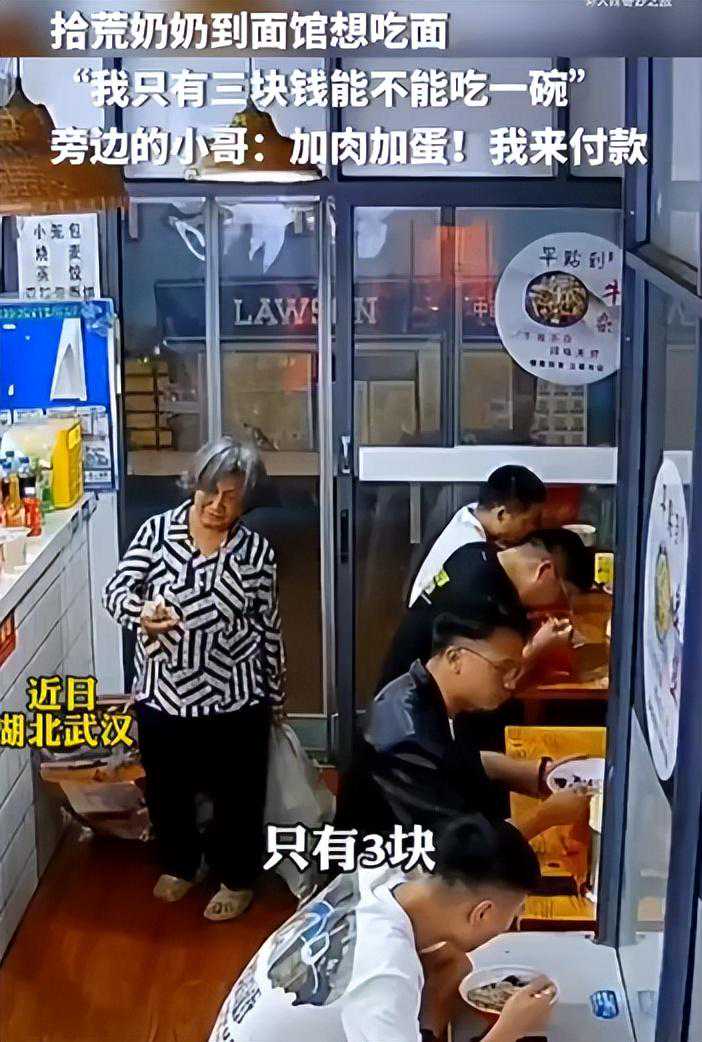 近日,一位拾荒的老人手拿着3块钱走进店里想要吃一碗面,但是却没得到老板的回应。