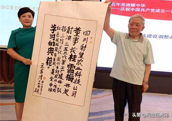 国务院三线建设调整办公室原主任王春才向爱心企业家桂雪梅女士赠送墨宝