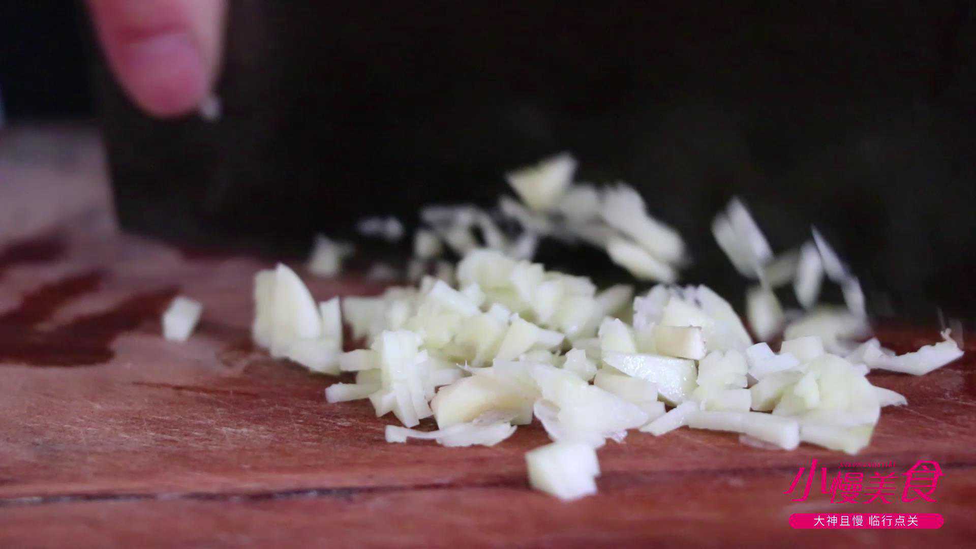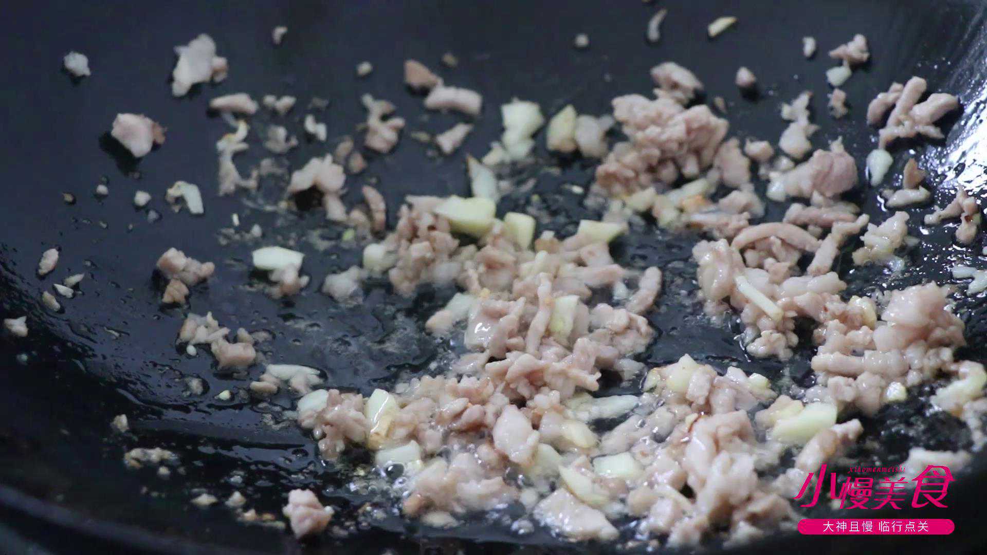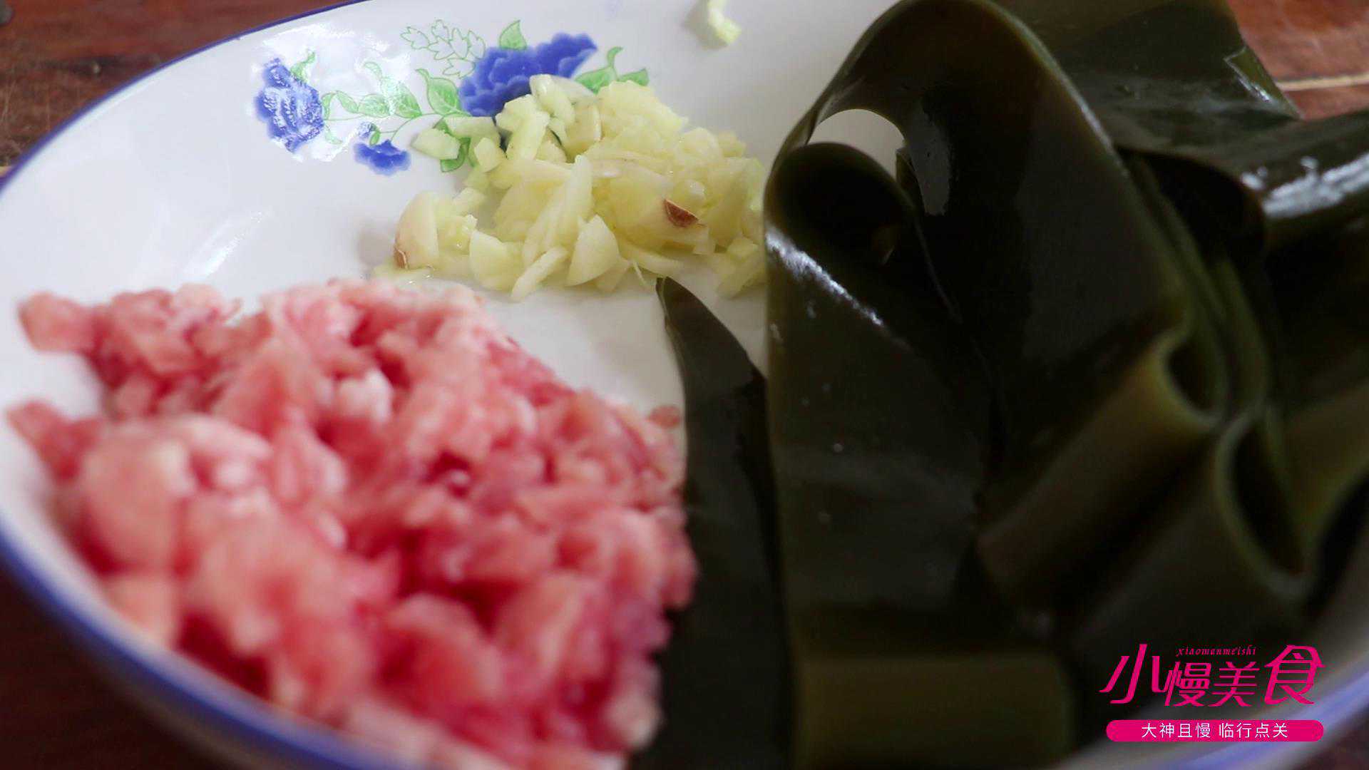 猪肉我们切成猪肉末。海带,我们切的宽一点,放在一旁备用