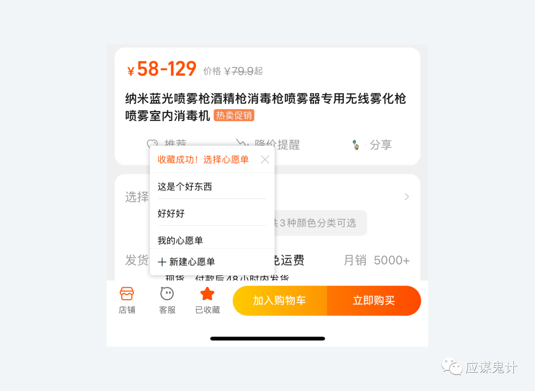 二、3种流程的区别前两种我认为区别并不大,是否要在提示框里给用户进入收藏列表的入口,更多还是取决于产品是否想让用户离开这个场景,还是让用户继续浏览。