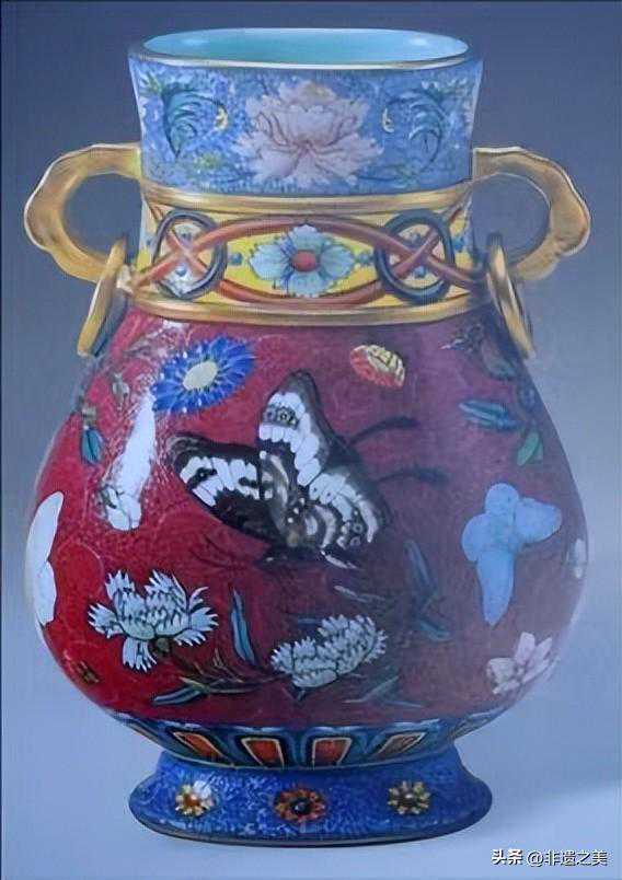它是先在景德镇烧制好精细白瓷胎,然后在清宫内务府造办处由御用画师彩绘并烧制而成。由于其产量低,加上是在宫廷密制,民间很难见到,因而使珐琅瓷变得极为名贵。珐琅彩中的珐琅料主要成分为PbO(氧化铅)、B2O3(三氧化二硼)、SiO2(二氧化硅)、As2O3(三氧化二砷)以及锑、金等着色金属氧化物。砷在低温铅釉中起乳浊剂作用,不透明的珐琅料中均含有砷。