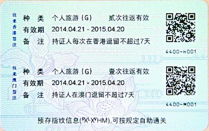 申请赴香港旅游,可以签发3个月一次、3个月二次、1年一次、1年二次签注。申请赴澳门旅游,可以签发3个月一次签注、1年一次签注。每次在港澳地区逗留不超过7天。