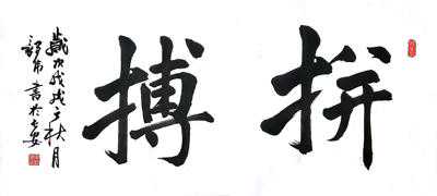 品读车毅伟先生书法作品,典雅而大气,锐健而润美,古不乖时,今不同弊,自成一格,极具大师风范。观其作品,结体和谐,行气贯通,一气呵成,透出雄浑与霸气,字里行间俨然笔墨的畅快淋漓,龙腾虎跃。那气韵生动,章法严谨,刚劲不柔的行笔,自有一种淳正之气,饱含英雄壮士的气质!
