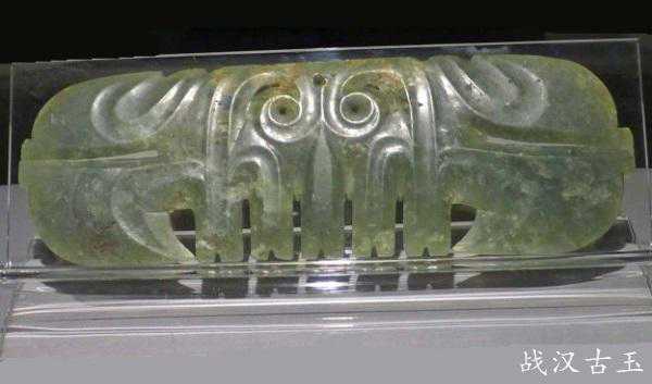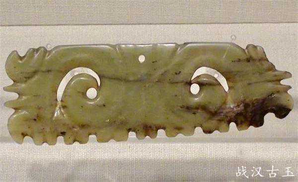 这件天津博物馆收藏的红山文化勾云佩,从造型上看鸟崇拜、龙崇拜、自然崇拜兼备,造型还有些像乌龟。玉质为青玉,肥熟感明显,瓦沟纹典型,从沁状看典型的东北坑口。