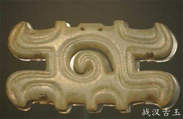 这件天津博物馆收藏的红山文化勾云佩,与之造型相近,但玉质、沁状、瓦沟纹的磨刻又明显不同。