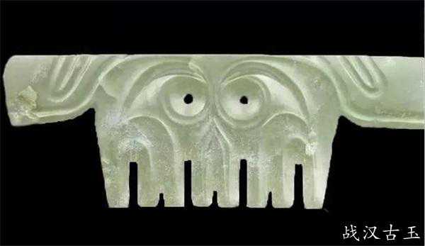 上图这件天津博物馆藏红山文化勾云佩确实有些像兽面或者猫头鹰脸的造型。比这件天津馆藏更生动的红山文化勾云佩还有不少,比如下图牛河梁出土的这块。