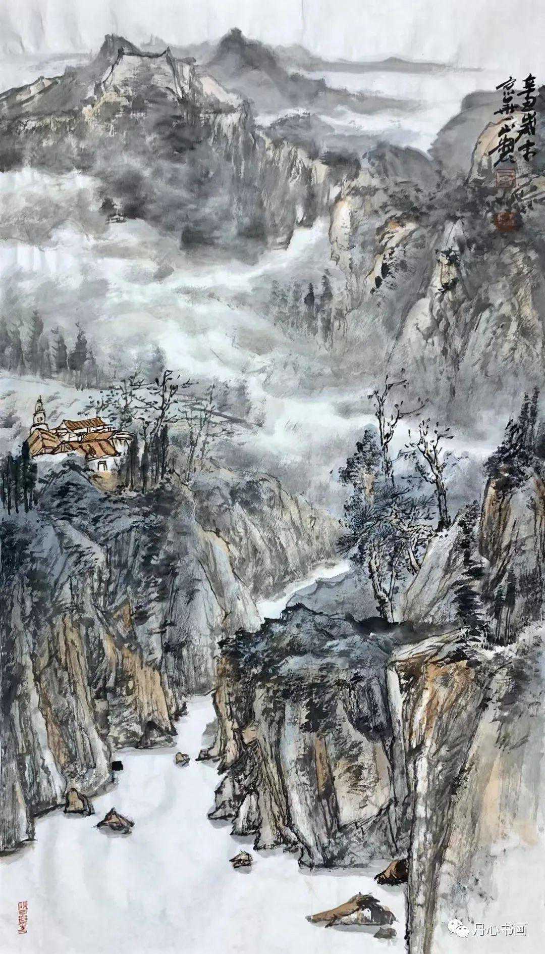 对于传统山水与现代山水融合的把握已经达到了一定的境界。其他的作品则以深穆苍莽、气韵生动、构景巧妙、线条秀润的风格而受喜欢他山水画的朋友所钟爱。另外,皴擦点染加以墨色的变化,使整副作品中既有古意还有今意,更重要是有他自己,这与他平时的勤奋刻苦是分不开的。