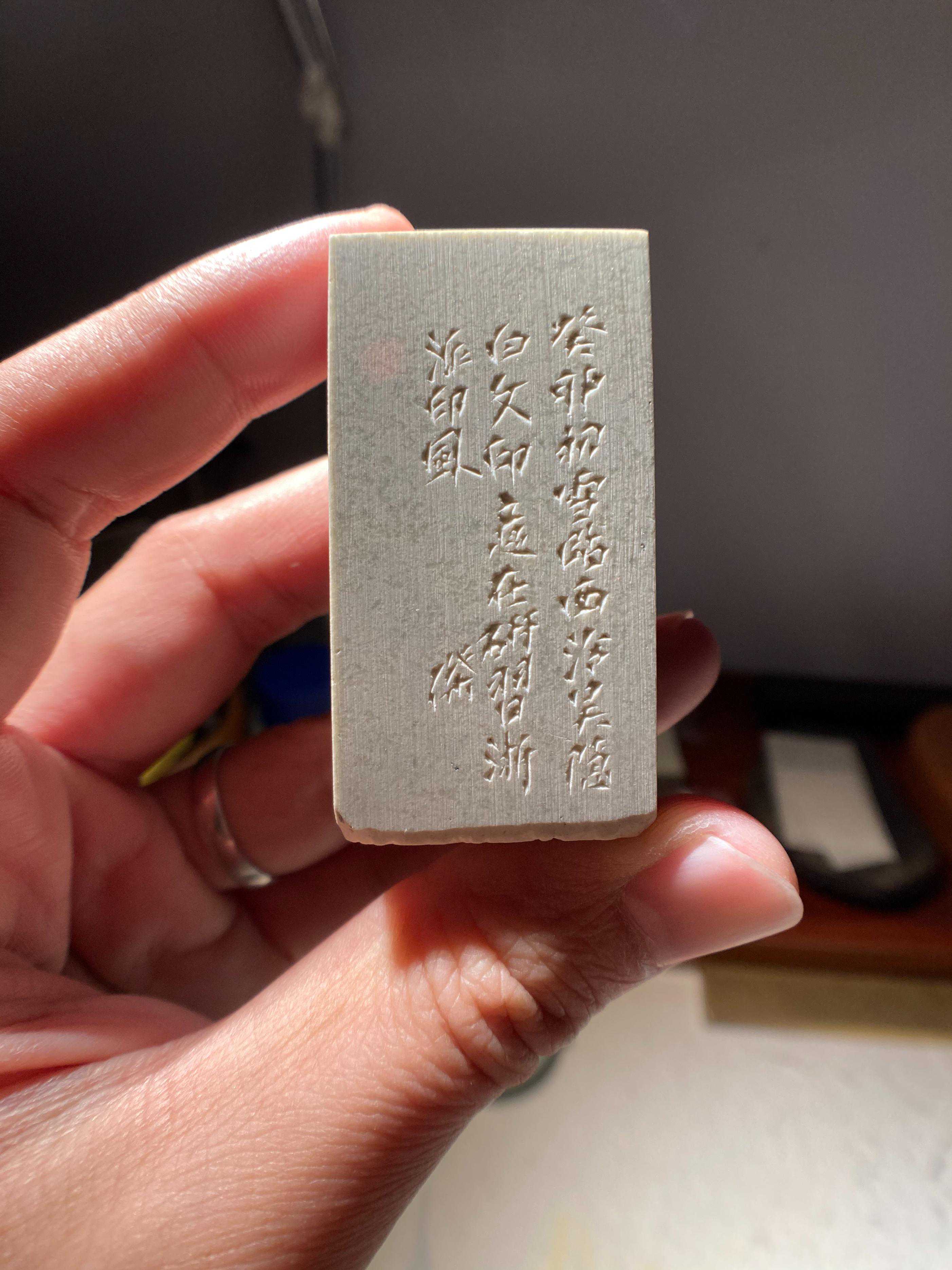 最后说一下,这方印石选用的是青田新矿,类似老挝,刀感粘腻,不如青田老矿爽利,所以有些需要崩裂的效果确实不易表现。但对于工稳印或者初学者,倒是可以使用。