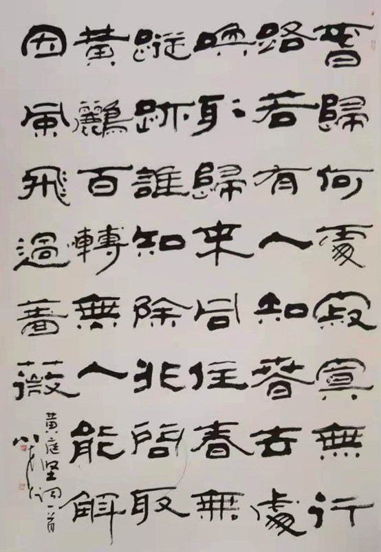 “姚体隶书”所呈现出的苍茫雄健,深稳朴拙,庄重伟岸,气象宏阔,非一般书家所能及也。如果说笔法结字可假以时日锤炼出模样,而书风气象则万万不可及。一个书家是否成熟关键看一个书家是否形成自己的艺术语言和风格,而这种语言和风格其实是书家心迹的表现,是一个书家综合艺术修养的体现,是一个书家的DNA,是一个书家的指纹,是一个书家的思想与灵魂。