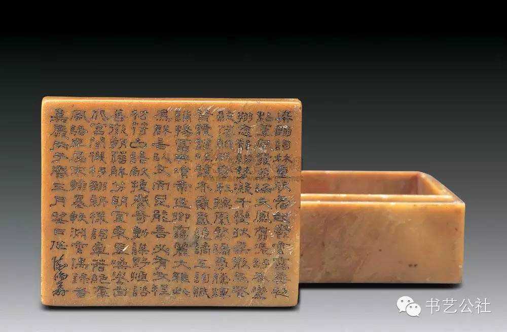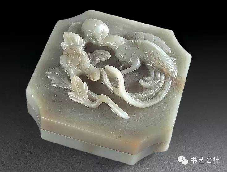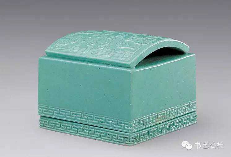 明代屠隆在《文房器具箋》中將印泥盒列為專項。印泥盒形式不一,以扁圓矮小者為常見,內盛印泥處十分平淺。所用材料有玉、石、竹、木、角、漆、金、銀、銅、鐵、象牙等多種,造型各异,雕琢精妙,可用可賞。前人有云:“印色池,唯瓷器最宜。若瓦器,耗油。铜锡有锈。玉与水晶及烧料俱有潮湿之弊,大害印色。近有以石为之,亦不适用。”