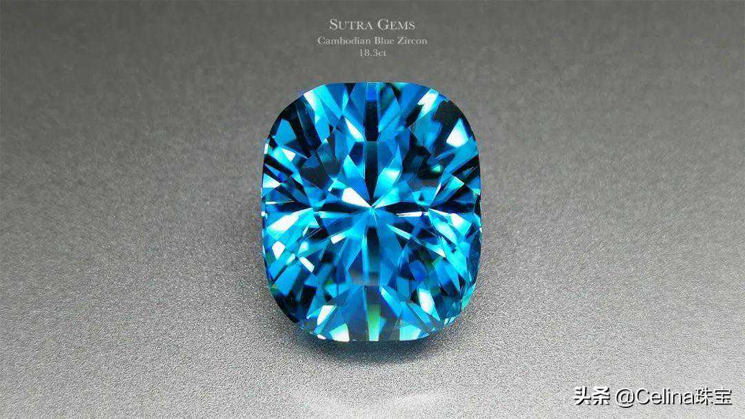 但也有顶级的柬埔寨天然锆石,蓝色浓郁,再看看这火彩,超赞!