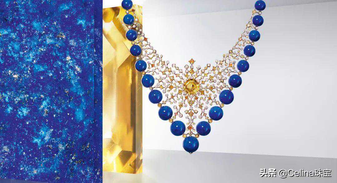 青金石是玉石的一种,致密、不透明,蓝得非常庄重、大气,文化底蕴也是很足——明清时期,因“色相如天”而成为了皇帝御用,也是四品官员的顶珠就是它,在古埃及与黄金同等价值。它盛产于阿拉伯国家,被阿富汗视为“国石”。