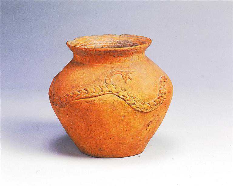 齐家文化凸堆龙纹红陶罐甘肃省博物馆藏