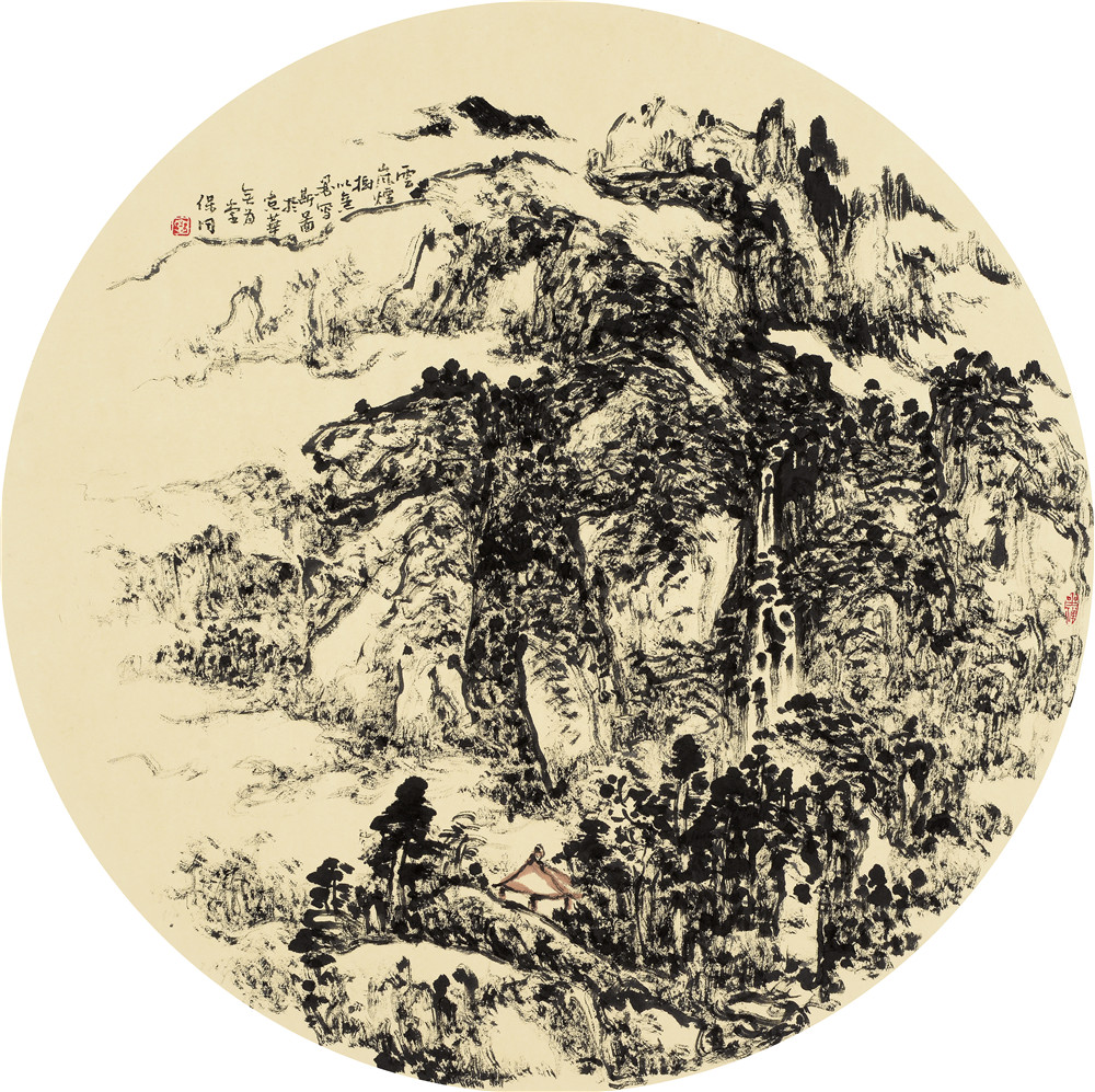 髡残的人生可以说是一直被浓重的悲剧气氛所笼罩,所以他的画不可能有弘仁那种超然寂静。“十年兵火十年病,消尽平生种种心,老去不能忘故物,云山犹向画中寻。”可见他是以性情中人,所以在他的画中,秃笔干墨的勾勒皴擦,水墨云烟的渲染,线条粗短,作跳跃似的律动,或以浓焦枯干之笔墨,森森然令人震慑。然而在郁动激奋之中却无霸悍板滞之气。