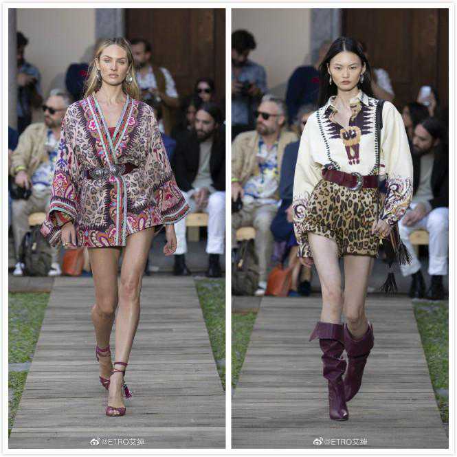ETRO2020春夏系列以“时髦猎人”为主题,秀场造型中兽纹元素诸多。图/ETRO官方微博截图