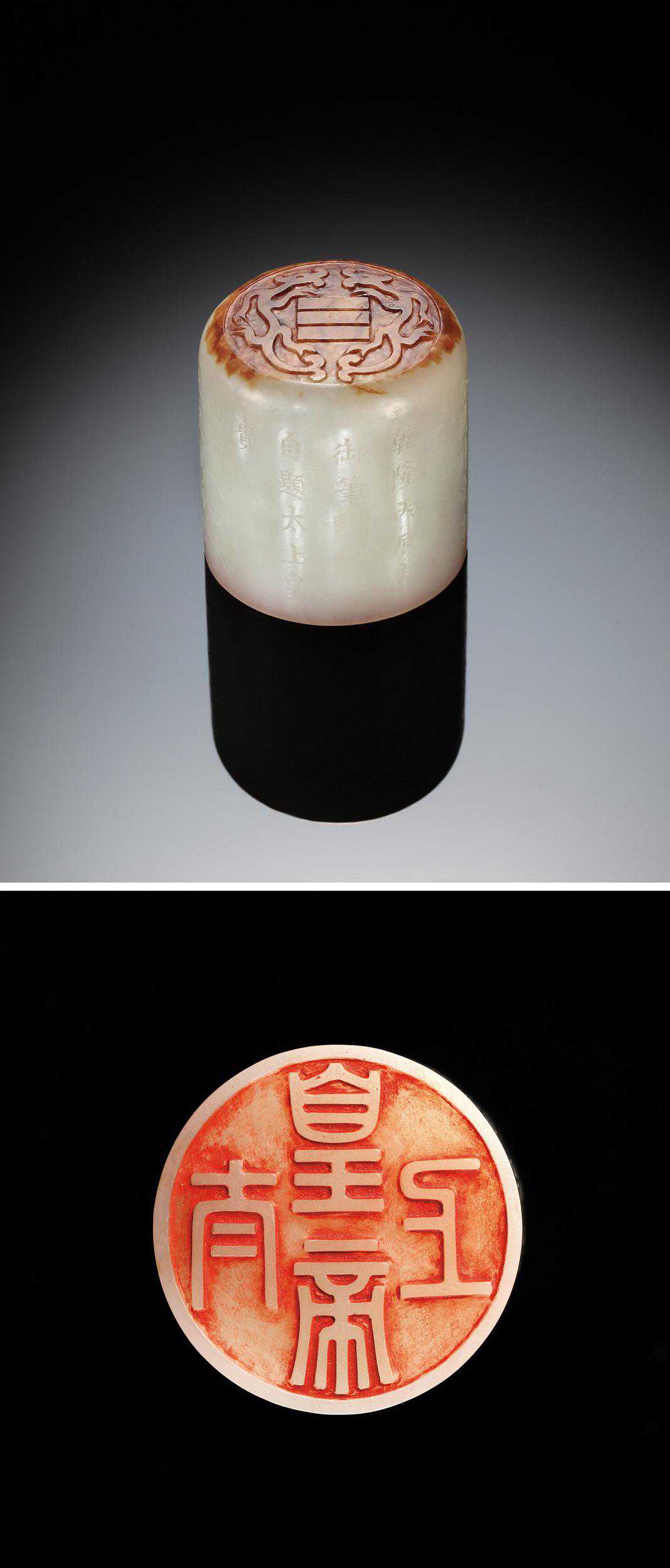 2010年一枚清乾隆青玉螭龙玉玺“乾隆御览之宝”在台北拍出4.8250亿新台币,正式将御用印玺带入“亿元时代”;2010年香港苏富比一枚清乾隆御宝“信天主人”交龙钮白玉玺以1.21亿港元成交;2011年,唯一一方清乾隆帝御宝题诗“太上皇帝”圆玺在北京保利秋拍中以1.61亿元成交;2016年,法国巴黎德鲁奥拍卖行一枚清乾隆寿山石九龙云纹方玺“乾隆御笔之宝”以2100万欧元(约1.6亿元)成交。