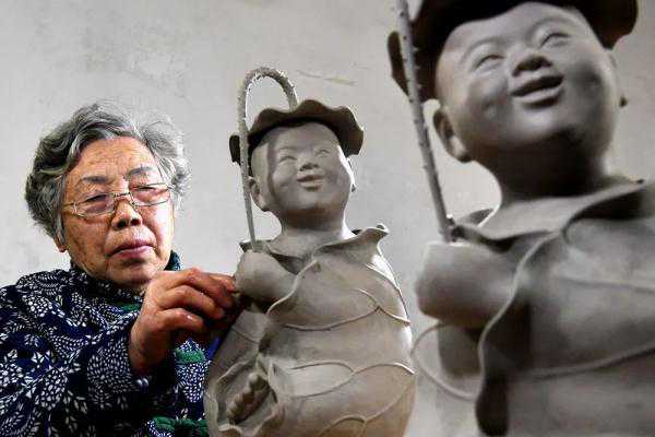 宝丰县大营镇汝瓷艺人王国奇展示“瓷鼠”作品(2020年1月21日摄)。新华社记者李嘉南摄