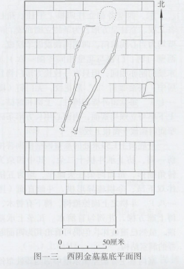 西阴金墓由墓道、墓门和墓室等三部分组成。因墓顶遭到破坏,故清理时直接进入墓室,墓道部分未清理。
