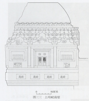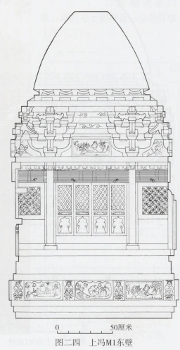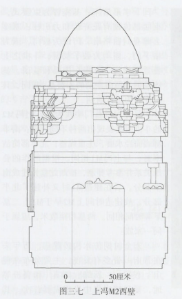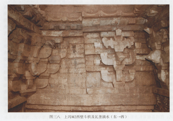 上冯M2不像Ml那样通体施彩绘,但其砖作露明部分特别是斗拱和门窗皆水磨,表面光洁。