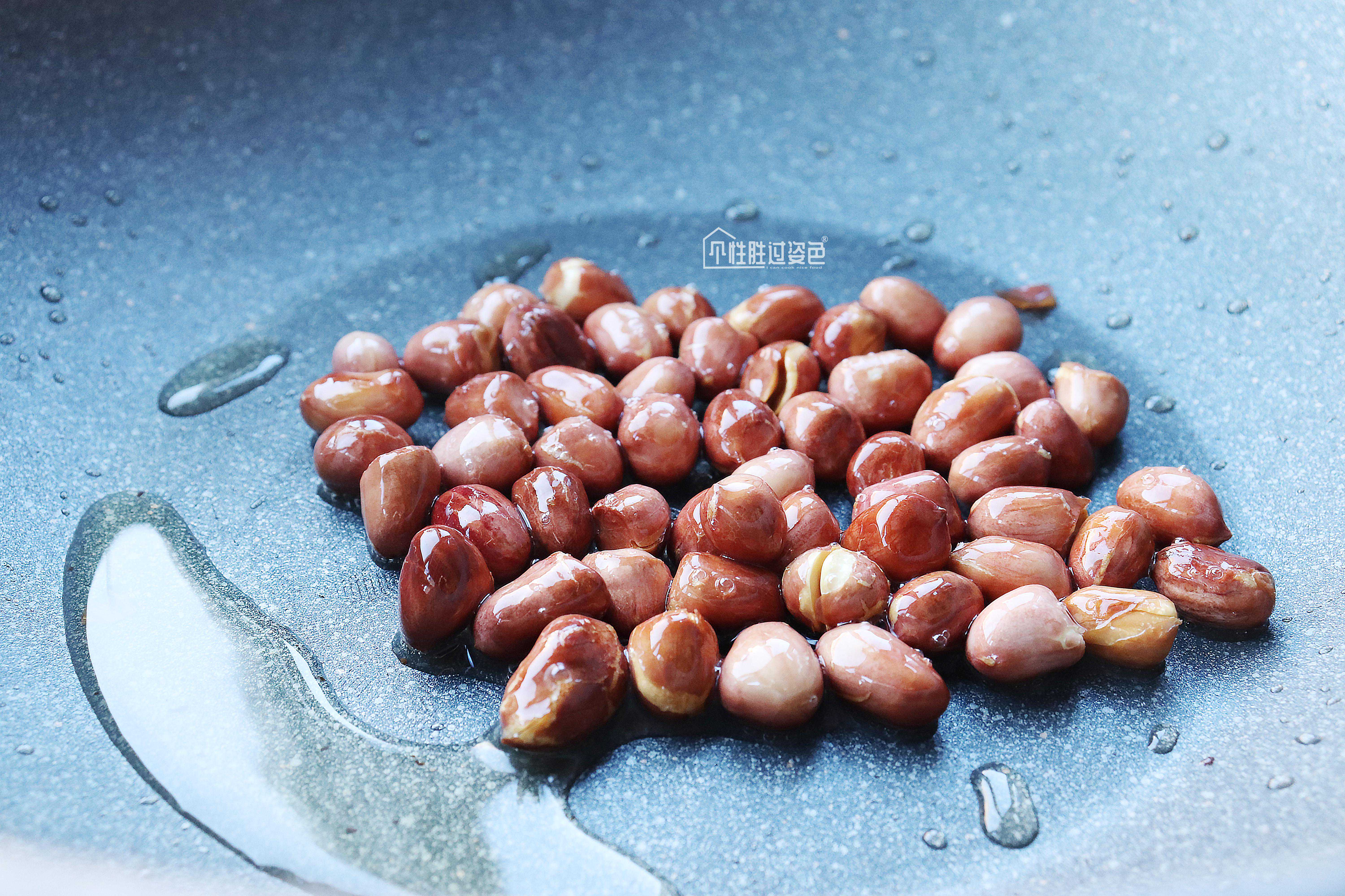 7.炒花生仁时不等油热了就把花生仁放入,油温千万不能高,否则会糊,红衣一变色,立刻关火用余温把花生炒熟