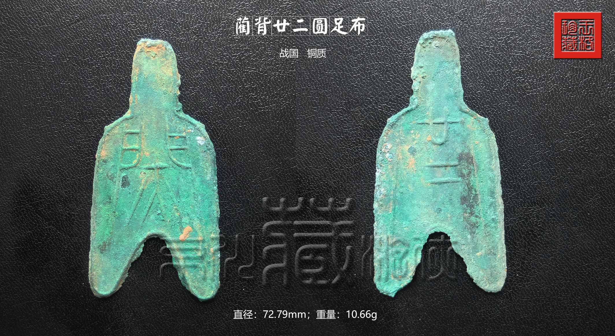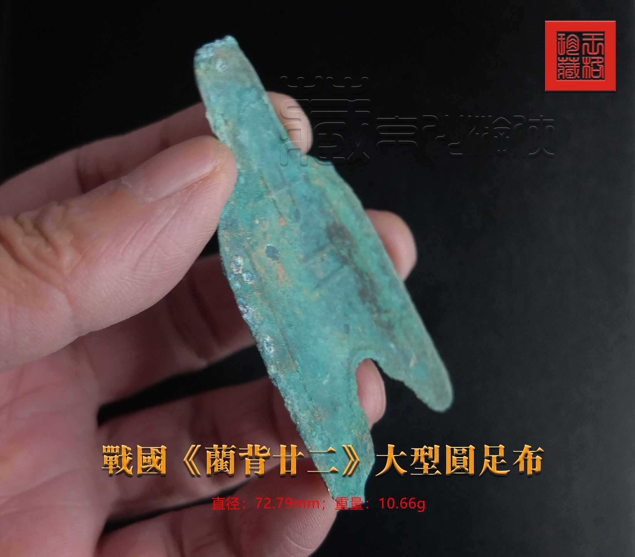 是故,今日赏泉,检点愚帐中所藏,则见一枚圆足布“蔺背廿二”,该数字查多种泉谱皆见有录入,可谓极难见之。故特将其帐中点出,拍照亮相,发于博客公展鉴赏,以飨泉好。