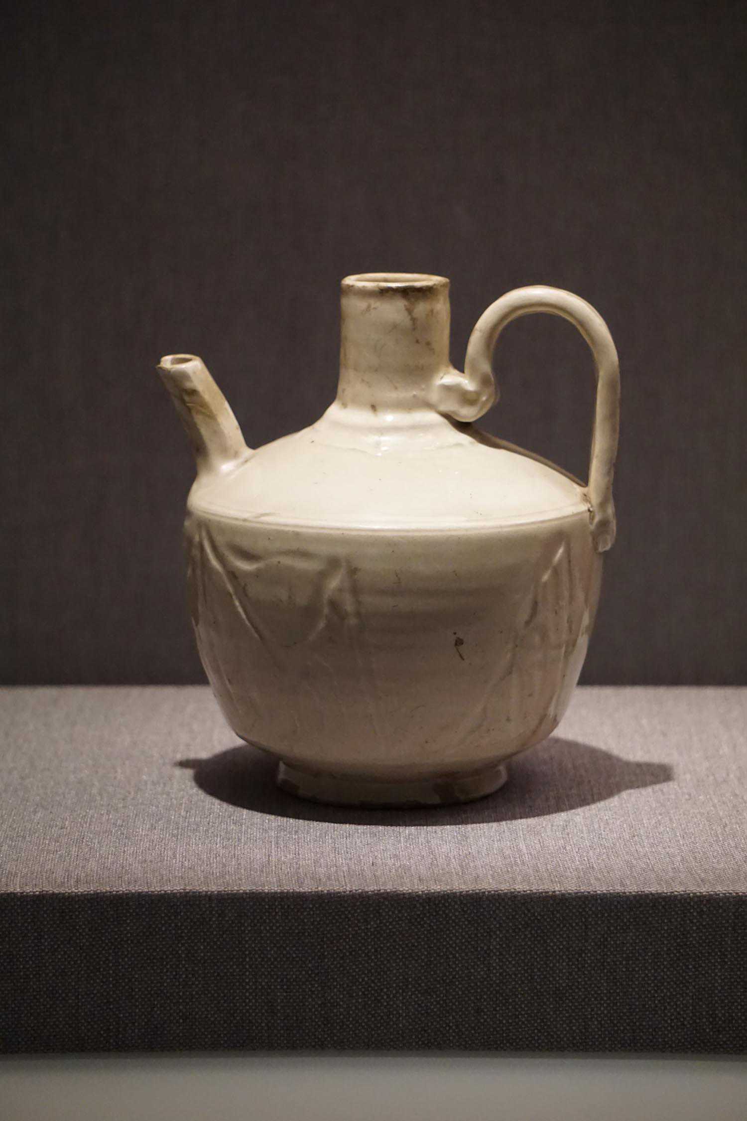 白瓷雕莲瓣纹执壶辽