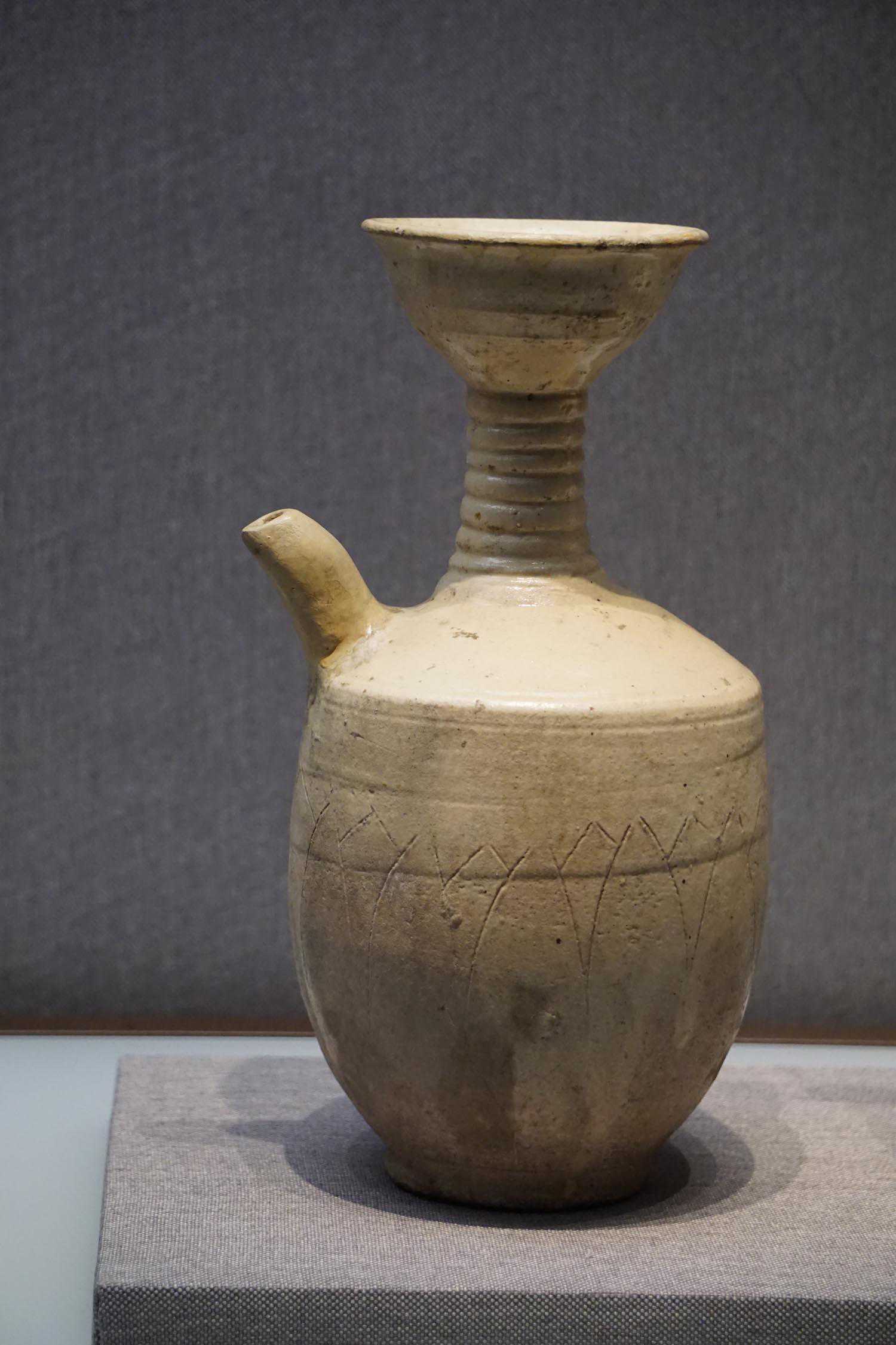 黄釉划弦纹凤首瓶辽