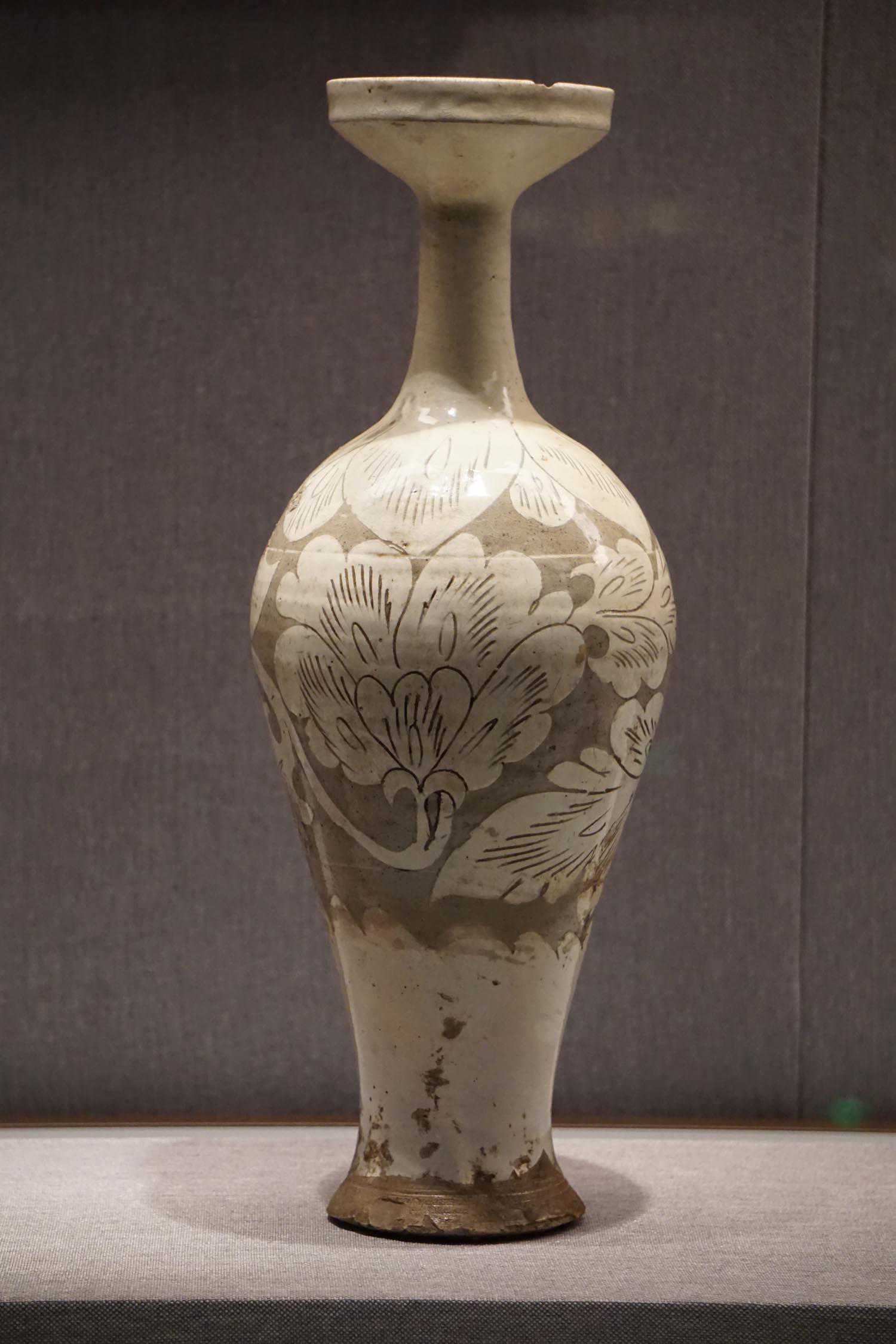 白瓷剔划牡丹纹盘口长颈瓶辽辽宁法库叶茂台辽墓出土